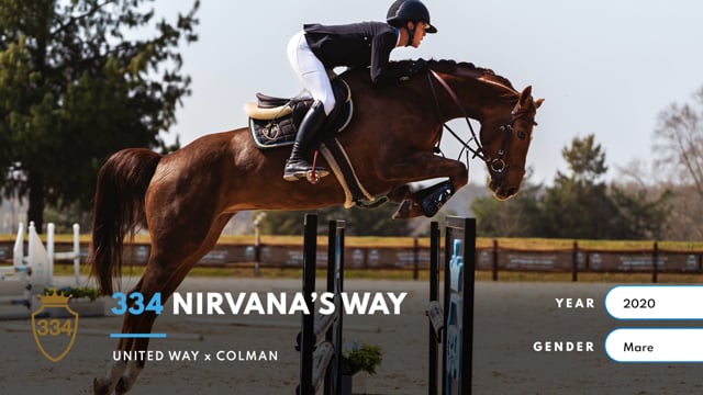 334 Nirvanas Way is by United Way, an athletic 1.50m showjumper whose offspring are already making their mark in international sport. On her dam side, she carries a very impressive line that goes back to the great Colman, bringing power, reflexes, and a legacy of international performers. This pedigree has produced a mare with exceptional care, rideability, and scope to burn. True to her colour—a fiery chestnut mare— Nirvanas Way is also a real crowd favorite: eye-catching in type, full of character, and bred with all the ingredients to reach the very top of the sport.